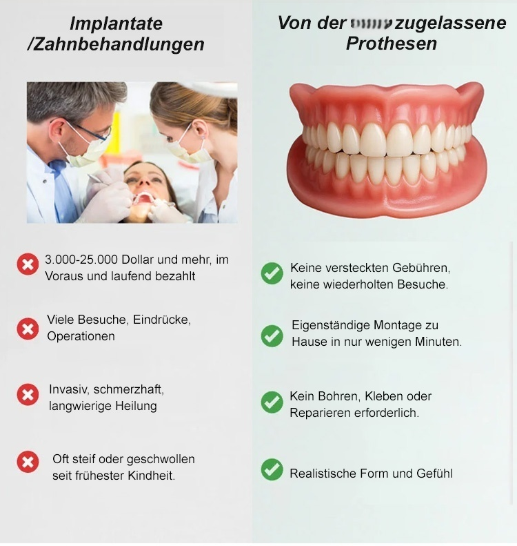Inklusive tragbarem Zahnersatzbehälter Einsekunden-Installation, keine Zahnarztbesuche erforderlich